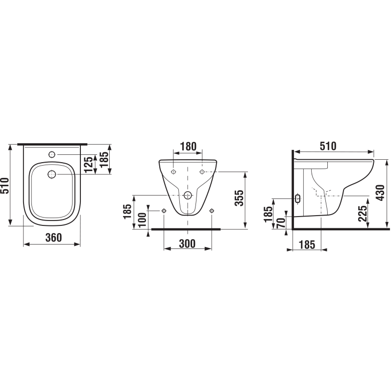 Pakabinama bidė, Su persipylimu, Baltos spalvos, Su 1 anga maišytuvui, Matmenys (PxAxG) - 360x430x510 mm, 10 metų garantija