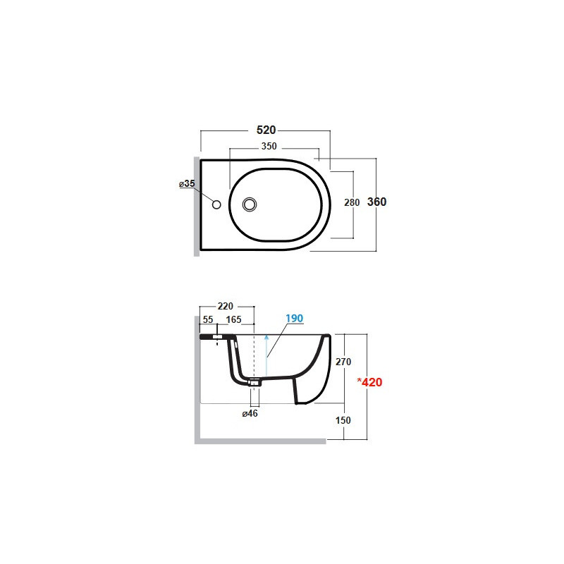 Pakabinama bidė, Su persipylimu, Baltos spalvos, Matmenys (PxAxG) - 360x420x520 mm, 10 metų garantija