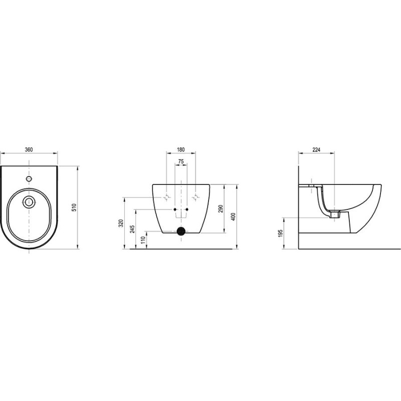 Pakabinama bidė, Su persipylimu, EasyFix paslėpta tvirtinimo sistema, Baltos spalvos, Matmenys (PxAxG) - 360x290x400 mm, 10 metų garantija