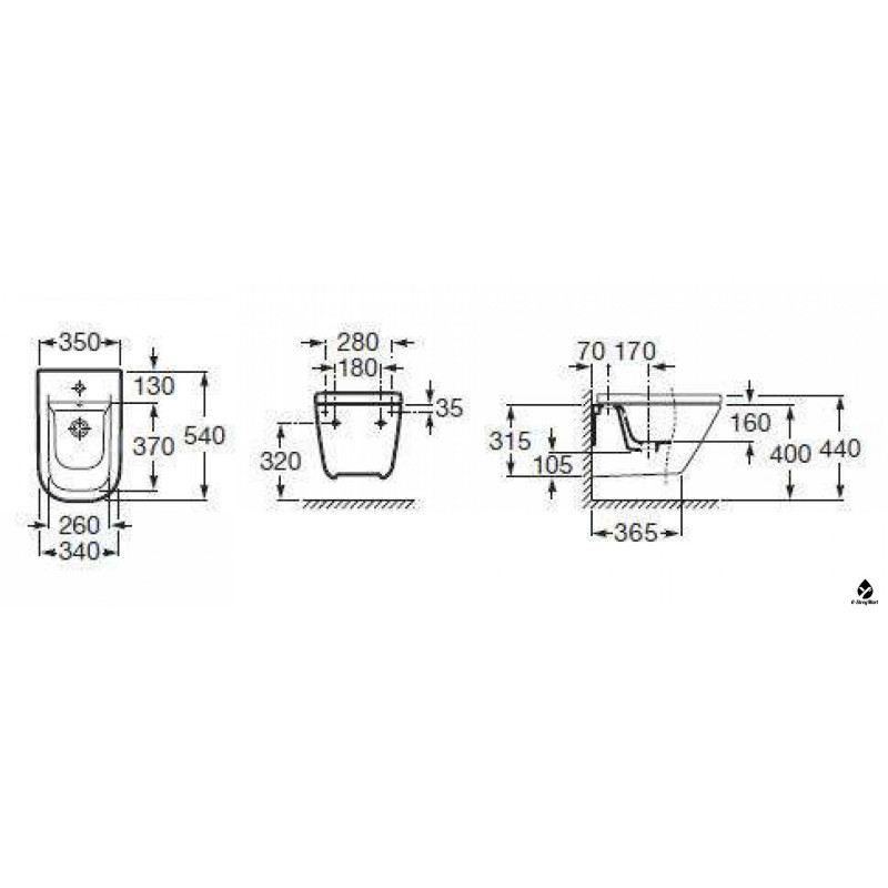 Pakabinama bidė, Su persipylimu, Baltos spalvos, Matmenys (PxAxG) - 350x440x540 mm, 7 metų garantija