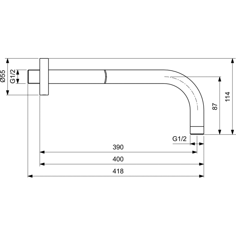 Dušo alkūnė dušo galvai iš sienos, 400 mm, Chromuota