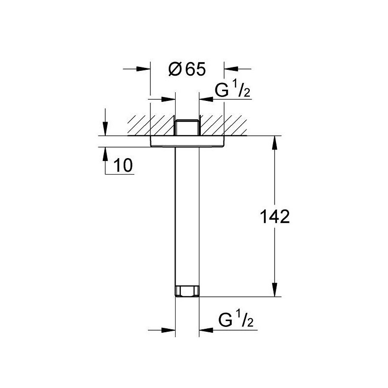 Dušo alkūnė galvai iš lubų Grohe Rainshower, 142mm, chromuota. Tinka Grohe Rainshower serijos dušo galvoms iš lubų. 5 metų garantija.