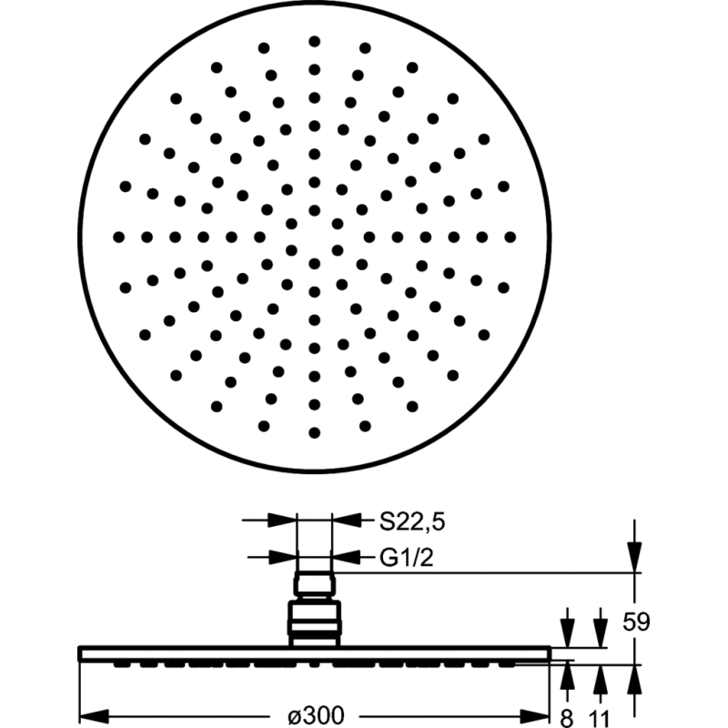 Dušo galva, Metalinė, Skersmuo - 300 mm, Chromo spalva, Pažangios technologijos purkštukai, Pajungimas - G 1/2", 2 metų garantija