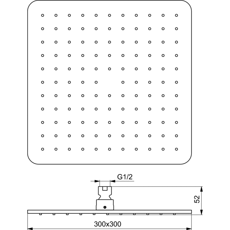 Dušo galva, 1 srovės, Matmenys - 300x300mm, Maksimalus vandens srovės srautas - 12 l/min., Chromo spalva, Pažangios technologijos lengvai valomi purkštukai, 2 metų garantija