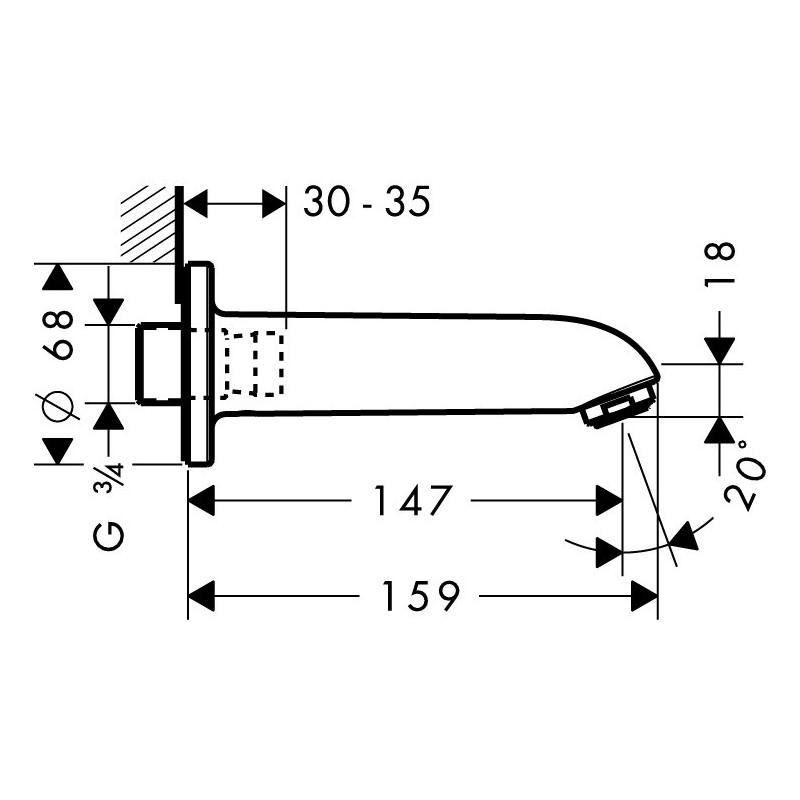 Vonios snapas Hansgrohe 147 mm, maišytuvui, chromo spalvos. Maksimalus vandens srovės srautas esant 3 bar slėgiui - 27.5 l/min. Suteikiama 5 metų garantija.