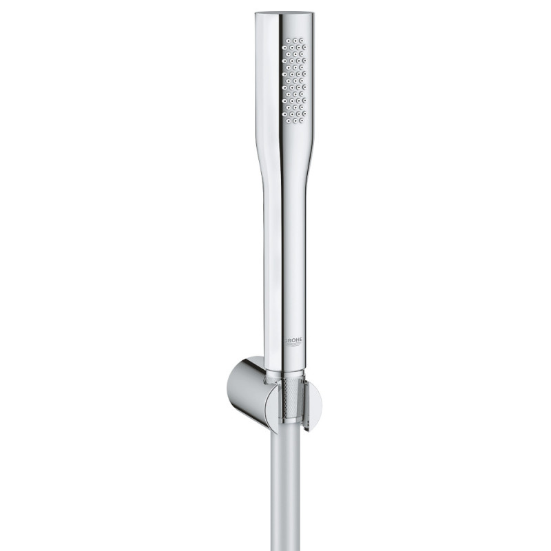 Dušo galva su laikikliu ir žarna Grohe Euphoria Cosmopolitan Stick, 1 srovės. StarLight ir SpeedClean technologijų pagalba, dušo galvos Grohe Euphoria Cosmopolitan Stick (1 srovės) priežiūra tampa itin lengva, ant jos nesikaupia kalkių nuosėdos.