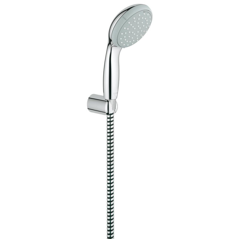 Dušo galva Grohe Tempesta 100 su laikikliu ir žarna, 2 srovių. StarLight chromo apdaila bei SpeedClean technologija, padeda lengvai prižiūrėti dušo galvą, ant jos nesikaupia kalkių nuosėdos, todėl nereikia didelių pastangų ją valant.