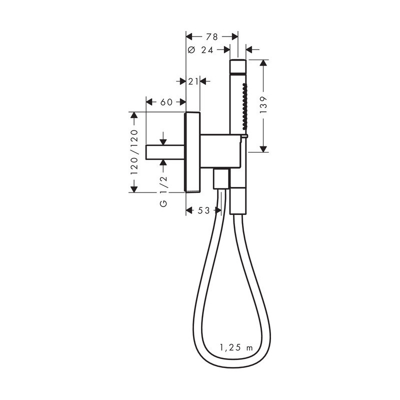 Dušo laikiklis su dušo galva Hansgrohe Porter Unit 120, chromo spalvos. Į komplektą įeina: 2 srovių rankinis dušas (galva), dušo laikiklis, 125 cm dušo žarna. Maksimalus dušo galvos vandens srovės srautas - 17.7 /min. Suteikiama 5 metų garantija.