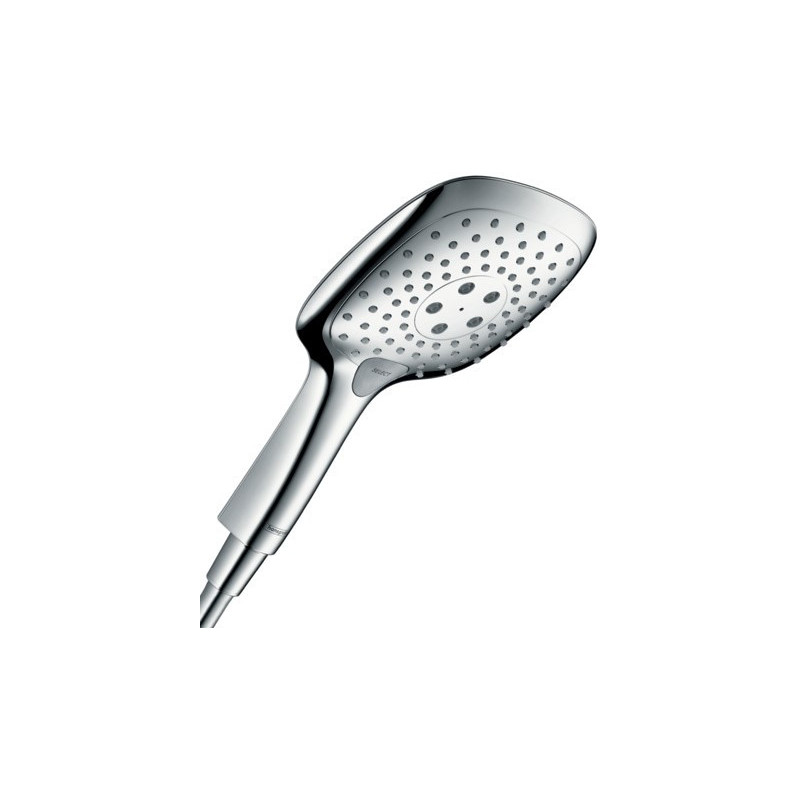 Dušo galva Hansgrohe Raindance E 150, 3 srovių. Dušo galva (150mm) su 3 srovių tipais ("CaresseAir", "RainAir", "Mix") leis mėgautis dušo teikiamu komfortu. Dušo galvutėje Hansgrohe Raindance E 150 maksimalus vandens srautas 16l/min. Suteikiama 5 metų garantija.