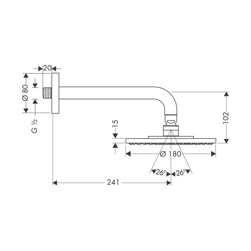 Potinkinė dušo galva iš sienos Hansgrohe Raindance S 180, su 240mm dušo alkūne. Potinkinė dušo galva iš sienos su 1 srovės tipu ("Rain"), leis mėgautis dušo teikiamu komfortu. Maks. vandens srovės srautas - 19l/min. Potinkinė dušo galva iš sienos Hansgrohe Raindance S 180 yra 180mm skersmens, o tai leis mėgautis plačia vandens srove, o maudymasis duše taps itin malonus. Suteikiama 5 metų garantija.