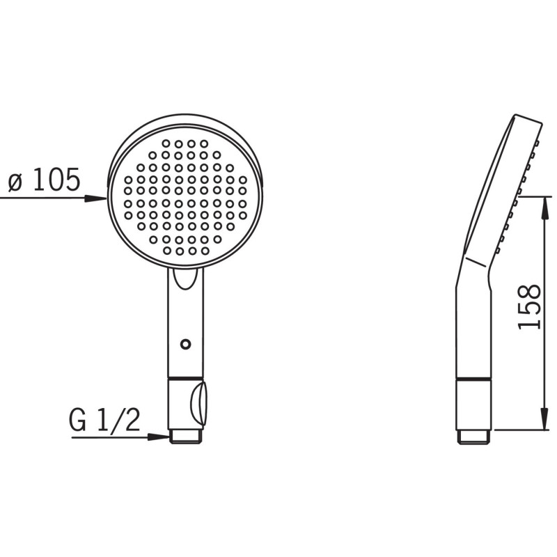 Dušo galva, Antikalkinė, Chromuota, Maks. vandens temperatūra - 65°C, 2 funkcijų, 105mm skersmens