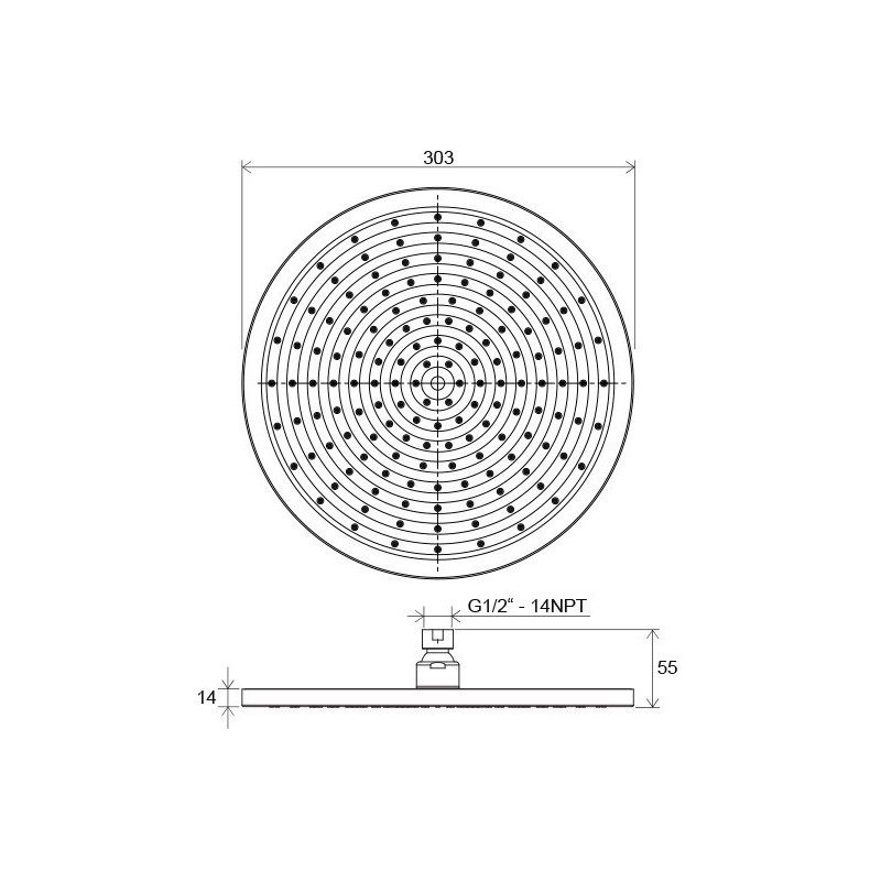 Dušo galvutė, Žalvarinė, Chromuota, EasyClean purkštukų valymo sistema, 300mm skersmuo
