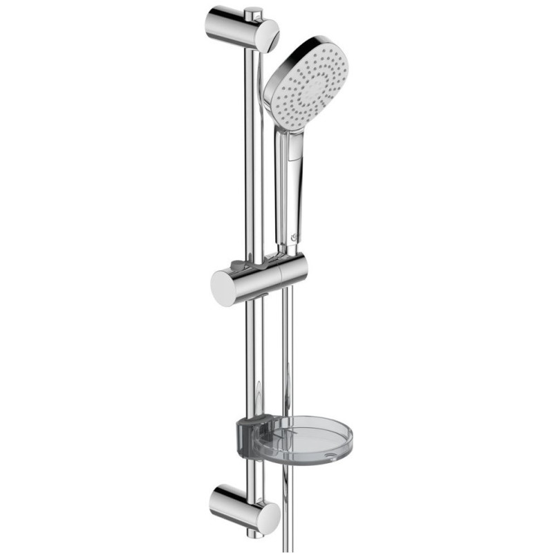 Dušo komplektas Ideal Standard Idealrain Evo Diamond. Į komplektą įeina: 175 cm dušo žarna, 60 cm stovas, plastikinė persišviečiama muilinė ir rankinis dušas su laikikliu ir 110 mm dušo galva (maks. vandens srautas - 8 l/min.). Dušo komplekte Ideal Standard Idealrain Evo Diamond esantis rankinis dušelis leis rinktis iš 3 vandens srovių tipų ("Rain", "Downpour", "Massage jet"), todėl galėsite mėgautis dušo teikiamu komfortu. Suteikiama 5 metų garantija.