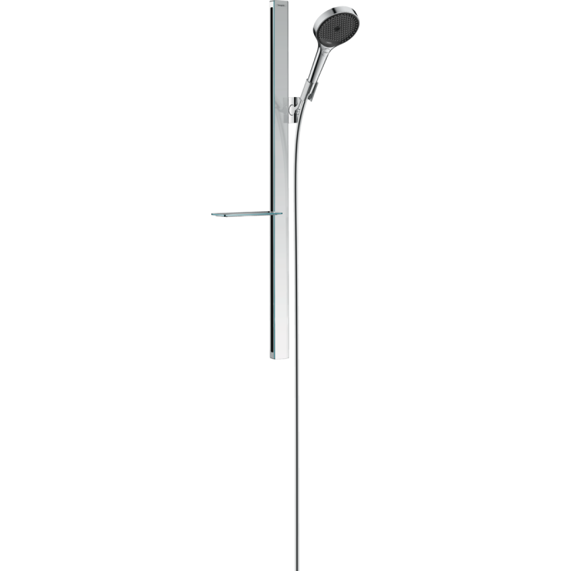 Dušo komplektas Hansgrohe Rainfinity 130, 90 cm, su 3 tipų srovėmis. Į komplektą įeina: dušo laikiklis, žarna, lentynėlė iš saugaus stiklo ir rankinis dušas su 130 mm skersmens dušo galva ir trimis "PowderRain", "Intense PowderRain" ir "MonoRain" vandens srovės tipais, kurie leis mėgautis dušo teikiamu komfortu. Dušo sistemoje Hansgrohe Rainfinity 130 maksimalus vandens srautas - 8 l/min (EcoSmart technologija). Vienas iš patogumų - rankinio dušo laikiklis reguliuojamas aukštyn, žemyn, kairėn ir dešinėn 90° kampu. QuickClean technologija - greitam nešvarumų ir kalkių nuosėdų pašalinimui. Suteikiama 5 metų garantija.