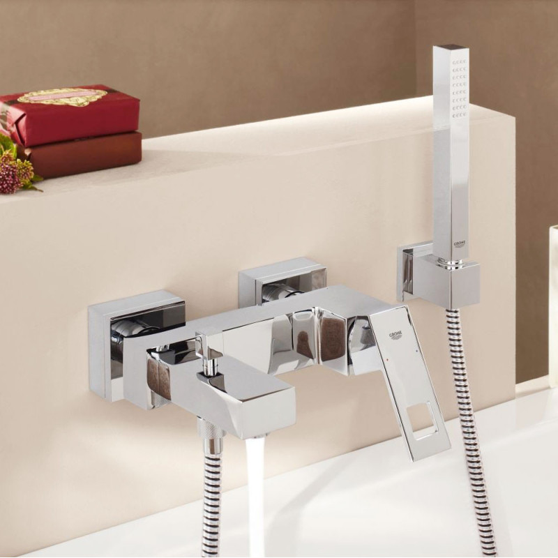 Vonios/dušo maišytuvas Grohe Eurocube, chromuotas. Produktai su Grohe StarLight chromo apdaila, kuri itin palengvina jų paviršiaus priežiūrą, todėl nereikia daugybės chemikalų idealiai švarai palaikyti. Vonios/dušo maišytuvas Grohe Eurocube turi integruotą automatinį perjungiklį - automatiškai perjungia vandens srautą, iš dušo į vonią, jam sumažėjus, o valdomas 1 rankenėle. Suteikiama 5 metų garantija.