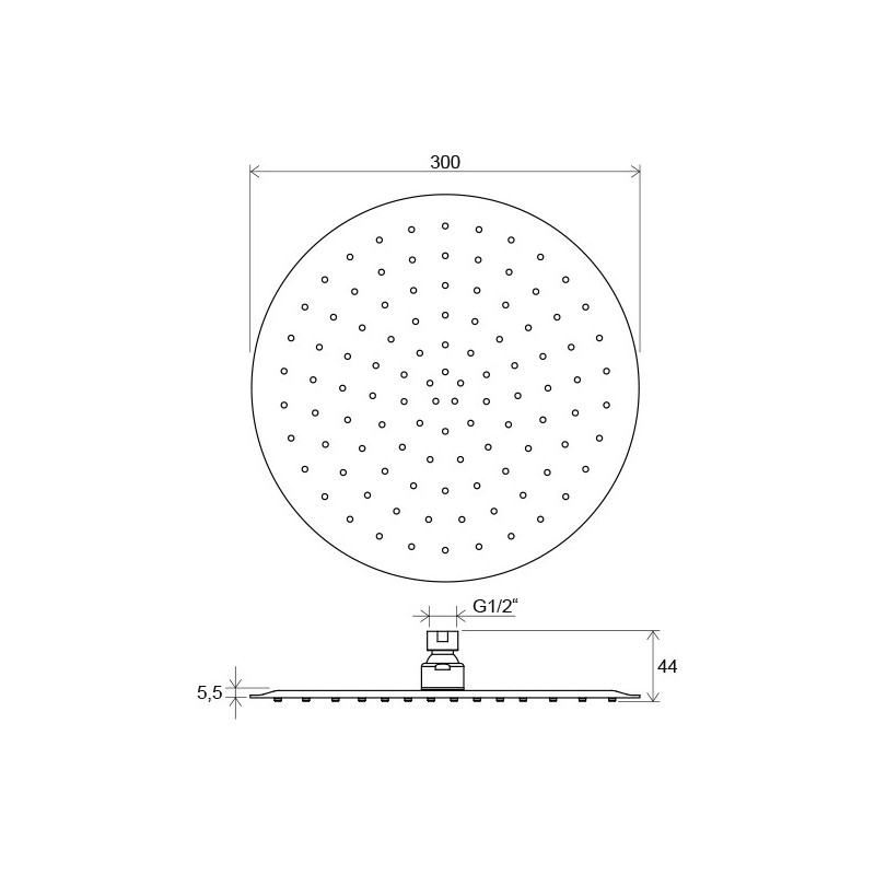 Dušo galvutė, Chromuota, Apvali, Skersmuo - 300 mm, Pagrindinė medžiaga - nerūdijantis plienas, 2 metų garantija