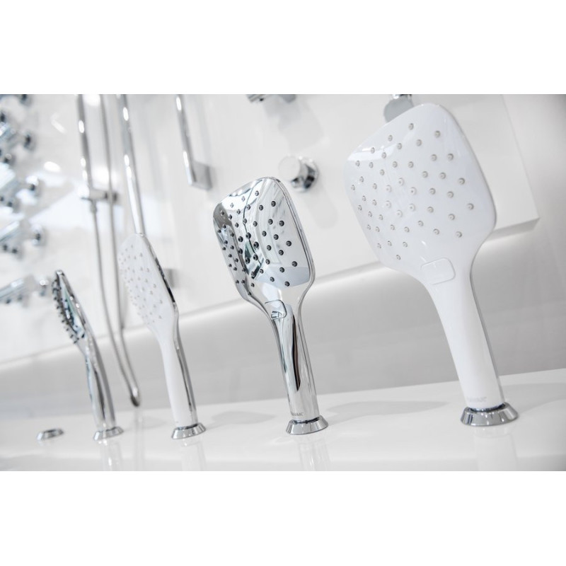 Dušo komplektas Ravak 907.00, su laikikliu. Į komplektą įeina: 150 cm dušo žarna, laikiklis, dušo galvutė (skersmuo 120 mm, 3 funkcijų - Rain, Jet, Rain + Jet). Dušo komplektas Ravak 907.00 tinka su visais Ravak vonios/dušo maišytuvais.