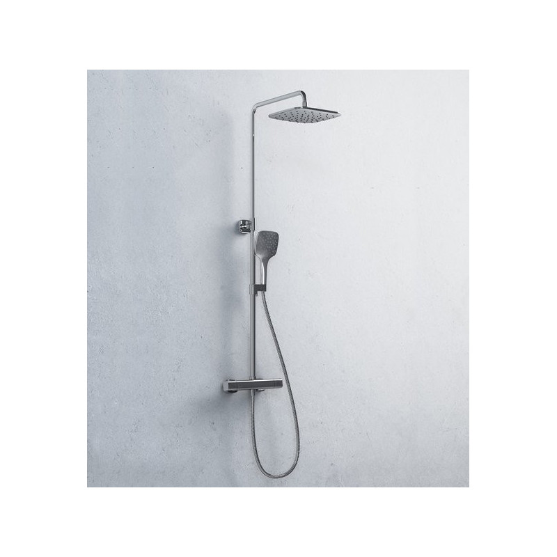 Termostatinė dušo maišytuvo sistema, Chromuota, Termostatinis dušo maišytuvas, 250 mm kvadratinė dušo galva prie lubų, Rankinis dušas, Reguliuojamas dušo stovas, Suteikiama 5 metų garantija