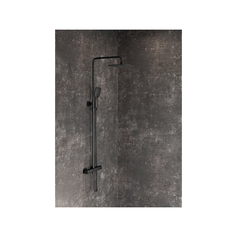 Termostatinė dušo maišytuvo sistema, Juodos spalvos, Termostatinis dušo maišytuvas, 250 mm kvadratinė dušo galva prie lubų, Rankinis dušas, Reguliuojamas dušo stovas, Suteikiama 5 metų garantija