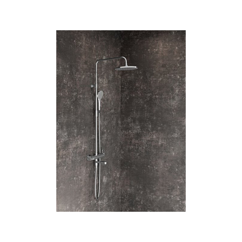 Dušo komplektas, Chromo spalvos, Reguliuojamas laikiklis, Dušo stovas, Apvali 250 mm skersmens lietaus dušo galva, 3 funkcijų rankinis dušas, CoolFeel temperatūros valdymas, EasyTwix dušo žarna, 5 metų garantija