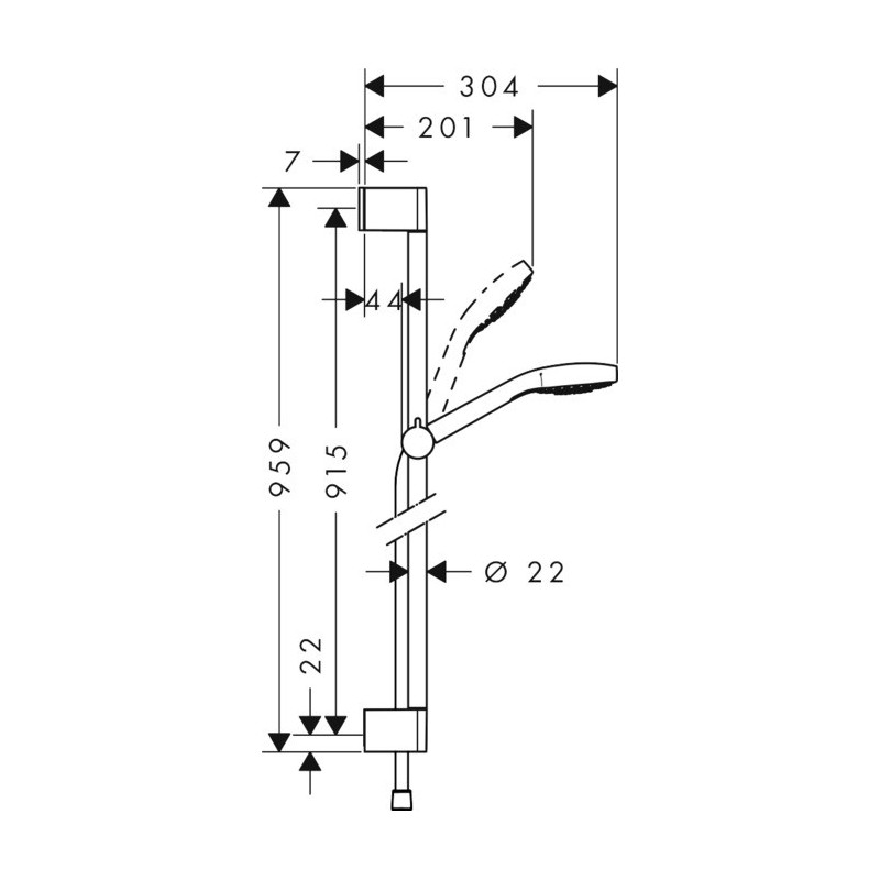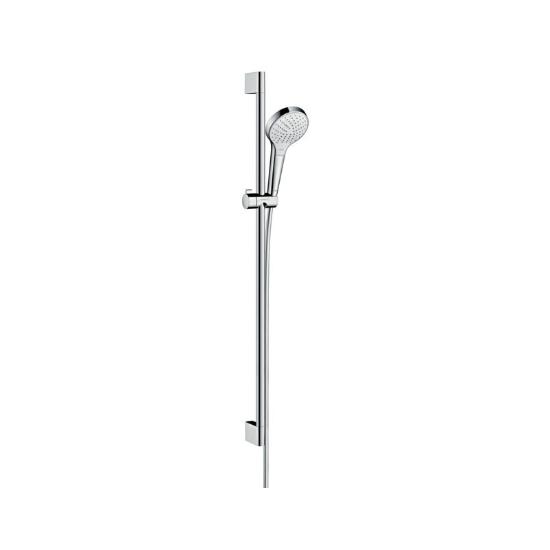 Dušo komplektas Hansgrohe Croma S Vario 110/Unica C 90. Rankinis dušas su 110mm skersmens galva ir 3 srovių tipais ("Rain", "IntenseRain", "TurboRain") leis mėgautis dušo teikiamu komfortu. Dušo komplekte Hansgrohe Croma S Vario 110/Unica C 90 maksimalus vandens srautas 15l/min. Suteikiama 5 metų garantija.