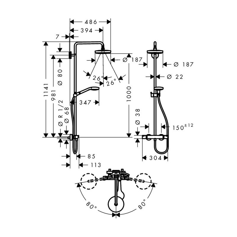 Dušo komplektas Hansgrohe Croma S Showerpipe 180 su termostatu. Dušo galva iš lubų 180mm bei rankinis dušas leis mėgautis visais dušo privalumais. Dušo galvoje iš lubų yra "Rain" bei "IntenseRain" srovės režimai, naudojantys maks. 16l/min vandens. Rankiniame duše yra 3 srovių tipai: ("SoftRain", "IntenseRain", "Massage spray"). Dušo komplekte Hansgrohe Croma S Showerpipe 180 yra galimybė apriboti karštą vandenį, bei nustatyti maksimalią vandens temperatūrą - 40°C, tai apsaugo nuo nusiplykimo duše. Suteikiama 5 metų garantija.