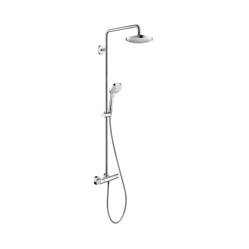 Dušo komplektas Hansgrohe Croma E Showerpipe 180 su termostatu. Dušo galva iš lubų 180mm bei rankinis dušas leis mėgautis visais dušo privalumais. Dušo galvoje iš lubų yra "Rain" bei "IntenseRain" srovės režimai, naudojantys maks. 16l/min vandens. Rankiniame duše yra 3 srovių tipai: ("SoftRain", "IntenseRain", "Massage spray"). Dušo komplekte Hansgrohe Croma E Showerpipe 180 yra galimybė apriboti karštą vandenį, bei nustatyti maksimalią vandens temperatūrą - 40°C, tai apsaugo nuo nusiplykimo duše. Suteikiama 5 metų garantija.