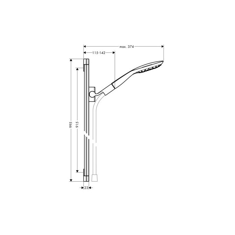 Dušo komplektas Hansgrohe PuraVida Unica 90. Į komplektą įeina: 90cm stovas, 160cm dušo žarna ir rankinis dušas su 150mm skersmens galva ir 3 srovių tipais ("RainAir", "CaresseAir", "Mix"), kuris leis mėgautis dušo teikiamu komfortu. Dušo komplekte Hansgrohe PuraVida Unica 90 maksimalus vandens srautas 16l/min. Suteikiama 5 metų garantija.
