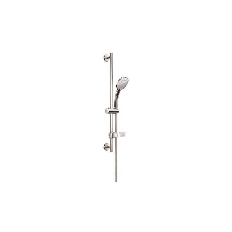 Dušo komplektas Ideal Standard IdealRain Cube M1, su stovu. Į komplektą įeina: 175cm dušo žarna, 90cm stovas, muilinė ir 1 srovės rankinis dušas su laikikliu ir 100mm kvadratine dušo galva. Dušo komplekte Ideal Standard IdealRain Cube M1, esantis vandens srovės srauto reguliatorius taupo vandenį - 8l/min. Suteikiama 5 metų garantija.