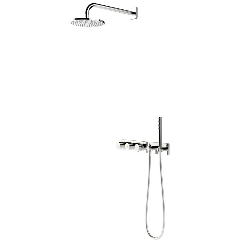 Termostatinio lietaus dušo maišytuvo dekoratyvinė dalis su dušo galva ir dušo komplektu, Dviguba vandens srauto kontrolė, Dušo žarna, Dušo laikiklis, Maitinimas 230/12V