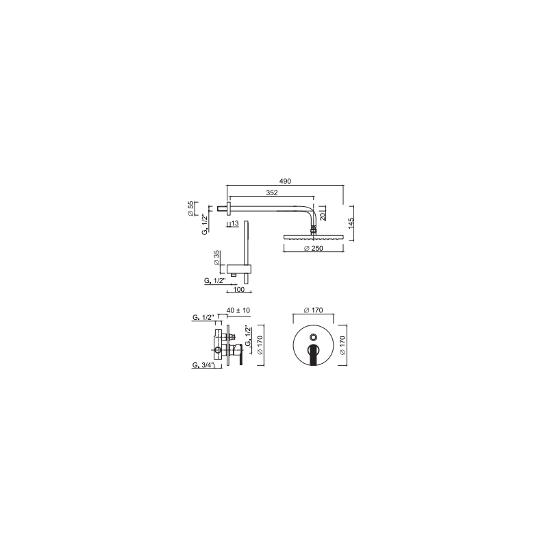 - Su lietaus dušo galva ir rankiniu dušeliu