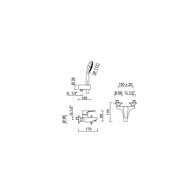 Vonios maišytuvas Giulini Lady 6401, su dušo komplektu