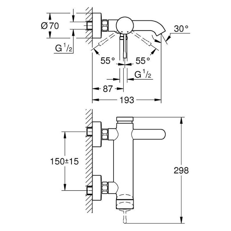 Vonios maišytuvas Grohe Essence, nerūdijančio plieno. Vonios maišytuvo apdaila padeda lengvai jį prižiūrėti, todėl nereikia didelių pastangų jį valant. 35 mm keraminė kasetė užtikrina sklandų ir ilgaamžį maišytuvo veikimą. Integruotas atgalinis vožtuvas ir vandens temperatūros ribotuvas. Vonios maišytuvas Grohe Essence automatiškai perjungia vandens srautą, iš dušo į vonią, jam sumažėjus. Suteikiama 5 metų garantija.