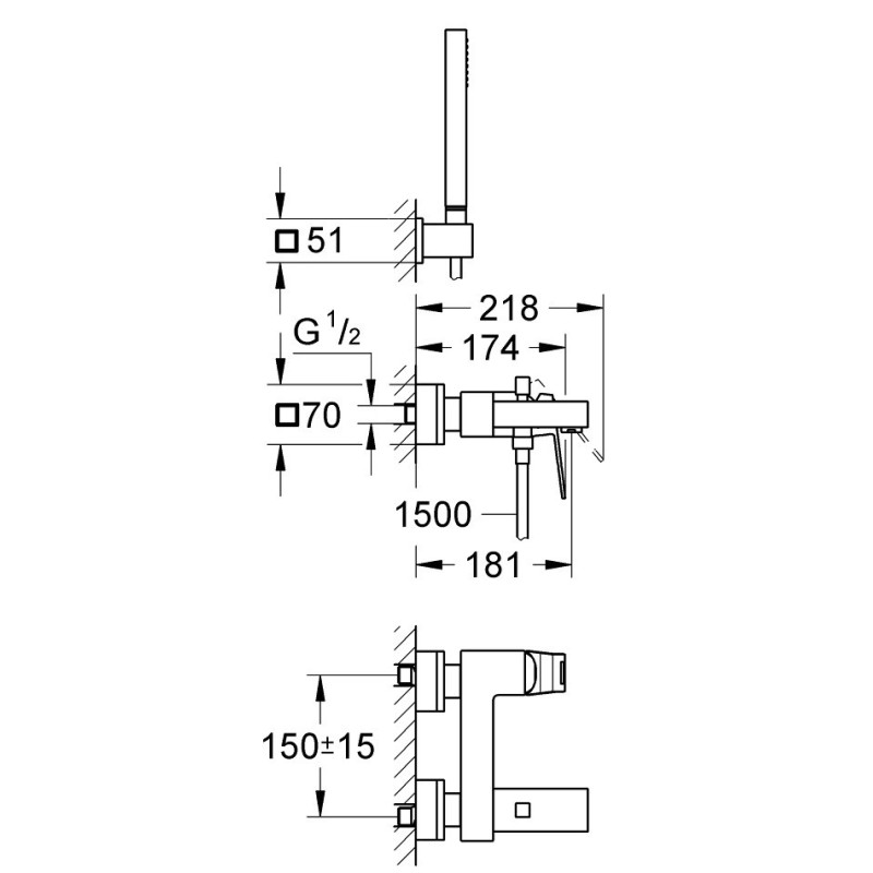 Vonios/dušo maišytuvas Grohe Eurocube, chromuotas, su dušo komplektu. Produktai su Grohe StarLight chromo apdaila, kuri itin palengvina jų paviršiaus priežiūrą, todėl nereikia daugybės chemikalų idealiai švarai palaikyti. Vonios/dušo maišytuvas Grohe Eurocube turi integruotą automatinį perjungiklį - automatiškai perjungia vandens srautą, iš dušo į vonią, jam sumažėjus, o valdomas 1 rankenėle. Komplekte yra: dušo laikiklis, rankninis dušelis ir 150 cm dušo žarna. 46 mm keramikinė kasetė užtikrins sklandų ir ilgaamžį maišytuvo veikimą. Suteikiama 5 metų garantija.