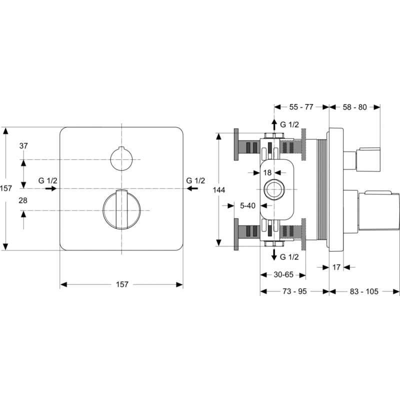 Termostatinis potinkinis dušo/vonios maišytuvas Ideal Standard Ceratherm 200, sieninis, chromuotas. Chromo apdaila padeda lengvai prižiūrėti maišytuvą, todėl nereikia didelių pastangų jį valant. Termostatinis dušo/vonios maišytuvas palaiko vienodą vandens temperatūrą, nepaisant slėgio ir temperatūrų skirtumų, todėl galėsite mėgautis komfortišku maudymusi. Termostatinis maišytuvas turi integruotą perjungiklį, kuriuo galėsite perjungti vandens srautą iš dušo į vonią (ir atvirkščiai). Paspaudus mygtuką galima apriboti vandens srautą 50 %. Taip pat yra galimybė apriboti vandens temperatūrą ties 40 °C, tai apsaugo nuo nusiplikymo, kas yra naudinga maudantis vaikams. Papildomai reikia įsigyti Ideal Standard A1000NU potinkinę dalį. Suteikiama 5 metų garantija.