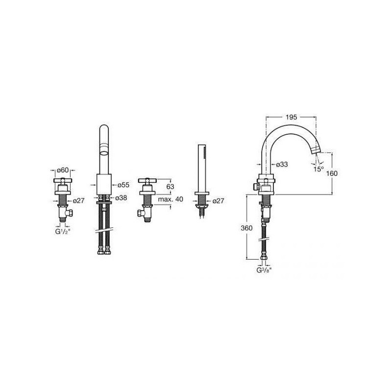 Vonios maišytuvas Roca Loft, 4 dalių, chromuotas. Vonios maišytuvo Roca Loft chromo apdaila padeda lengvai jį prižiūrėti, todėl nereikia didelių pastangų jį valant. Maišytuve įrengtos 2 chromuotos valdymo rankenėlės, skirtos reguliuoti vandens temperatūrą bei srovės stiprumą. Integruotas perjungiklis, kuriuo galėsite perjungti vandens srautą, iš dušo į vonią (ir atvirkščiai). Į komplektacija įeina: aukštas snapas, 2 valdymo rankenėlės ir rankinis dušelis su dušo žarna (1750 mm). Suteikiama 5 metų garantija.
