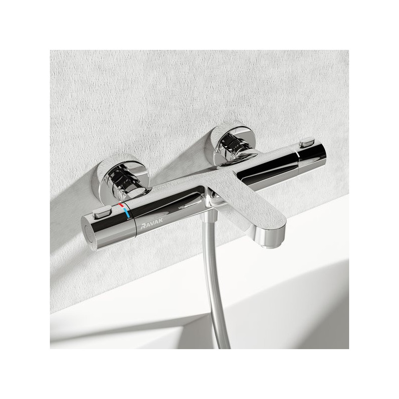 Termostatinis dušo maišytuvas Ravak TE 023.00. Termostatinio dušo maišytuvo Ravak TE 023.00 chromo apdaila padeda lengvai jį prižiūrėti, todėl nereikia didelių pastangų jį valant. Termostatiniame dušo maišytuve įrengtos rankenėlės, kurios skirtos reguliuoti vandens temperatūrą bei valdyti maišytuvą. Termostatinė kasetė suteiks ilgesnį dušo maišytuvo Ravak TE 023.00 tarnavimo laiką. Produktas tinka visoms dušo kabinoms Ravak. Termostatinis maišytuvas gebės palaikyti pastovią vandens temperatūrą netgi staigiai keičiantis slėgiui vamzdžiuose, ir tokiu būdu užtikrinti tokią temperatūrą, kokios Jums reikia. Termostatas efektyviai riboja be reikalo naudojamą vandenį reguliuojant iki reikiamos temperatūros, todėl maišytuvas Ravak TE 023.00 suteiks ne tik komfortą maudantis, bet ir taupys vandenį. Suteikiama 5 metų garantija.