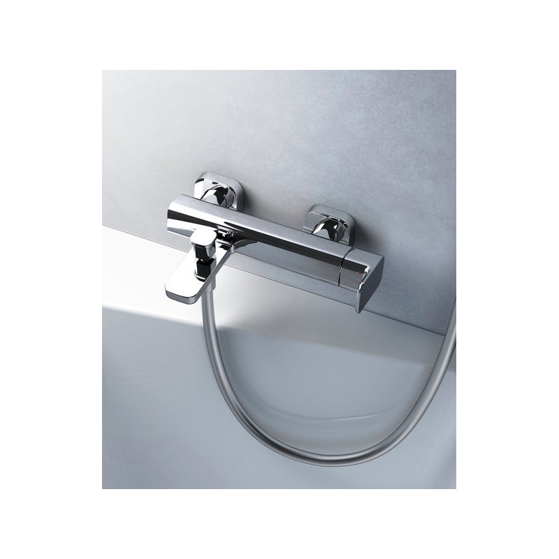 Vonios/dušo maišytuvas, Chromuotas, Chromuota svirtelė skirta reguliuoti temperatūrą ir srovės stiprumą, 150 mm atstumas tarp ašių, Keramikinė 35 mm kasetė, 5 metų garantija