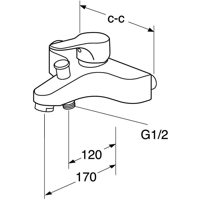 Dušo/vonios maišytuvas, Chromuotas, Montuojamas prie sienos, Metalinė svirtis, Reguliuojama vandens srovė, Keramikinė kasetė, Perjungiklis dušui/voniai, Vandens taupymo funkcija, Temperatūros apribojimo funkcija