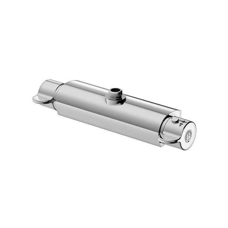 Termostatinis dušo maišytuvas Gustavsberg Nordic 3. Termostatinio dušo maišytuvo Gustavsberg Nordic 3 chromo apdaila padeda lengvai jį prižiūrėti, todėl nereikia didelių pastangų jį valant, patogios rankenėlės - suteiks komfortiškumo. Maišytuve integruota reguliuojama maksimalios temperatūros funkcija bei automatinis karšto vandens ribotuvas, apsaugo nuo nusideginimo. Termostatiniame dušo maišytuve Gustavsberg Nordic 3 integruotas temperatūrą ribojantis mygtukas, skirtas palaikyti komfortišką 38°C temperatūrą. SafeTouch funkcija sumažina šilumą iš priekinės maišytuvo dalies, todėl apsaugo nuo nudegimo. Termostatinis maišytuvas palaiko vienodą temperatūrą, esant slėgio bei temperatūros pokyčiams. Suteikiama 2 metų garantija.