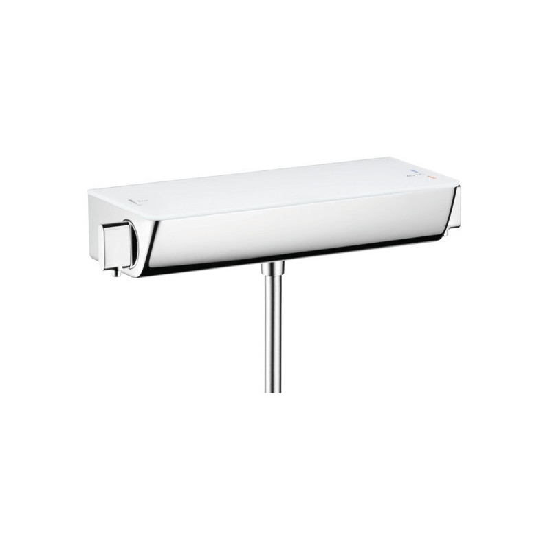 Termostatinis dušo maišytuvas Hansgrohe EcoStat Select. Termostainis dušo maišytuvas palaiko vienodą vandens temperatūrą, nepaisant slėgio ir temperatūrų skirtumų, todėl galėsite mėgautis komfortišku maudymusi duše. Maksimalus vandens srovės srautas - 12l/min, paspaudus EcoStop mygtuką srautas apribojamas iki 10l/min. Taip pat yra galimybė apriboti vandens temperatūrą ties 40°C, tai apsaugo nuo nusiplikymo duše, o tai naudinga maudantis vaikams. Suteikiama 5 metų garantija.