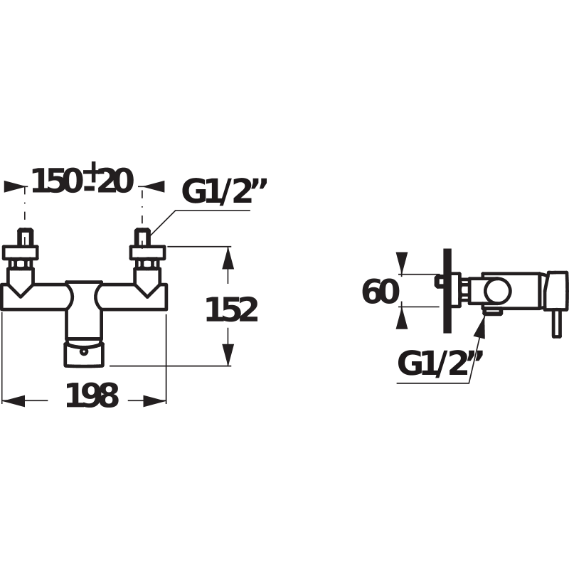 Sieninis dušo maišytuvas be dušo komplekto, Chromuotas, Keramikinė kasetė, Su chromuota svirtele temperatūros ir srovės reguliavimui