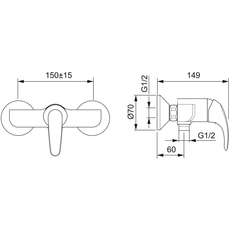 Dušo maišytuvas, Chromuotas, Maks. vandens srautas - 16.8l/min, Svirtelė skirta reguliuoti vandens temperatūrą ir srovės stiprumą, Žalvario korpusas, Integruotos vandens srauto ir temperatūros ribojimo galimybės
