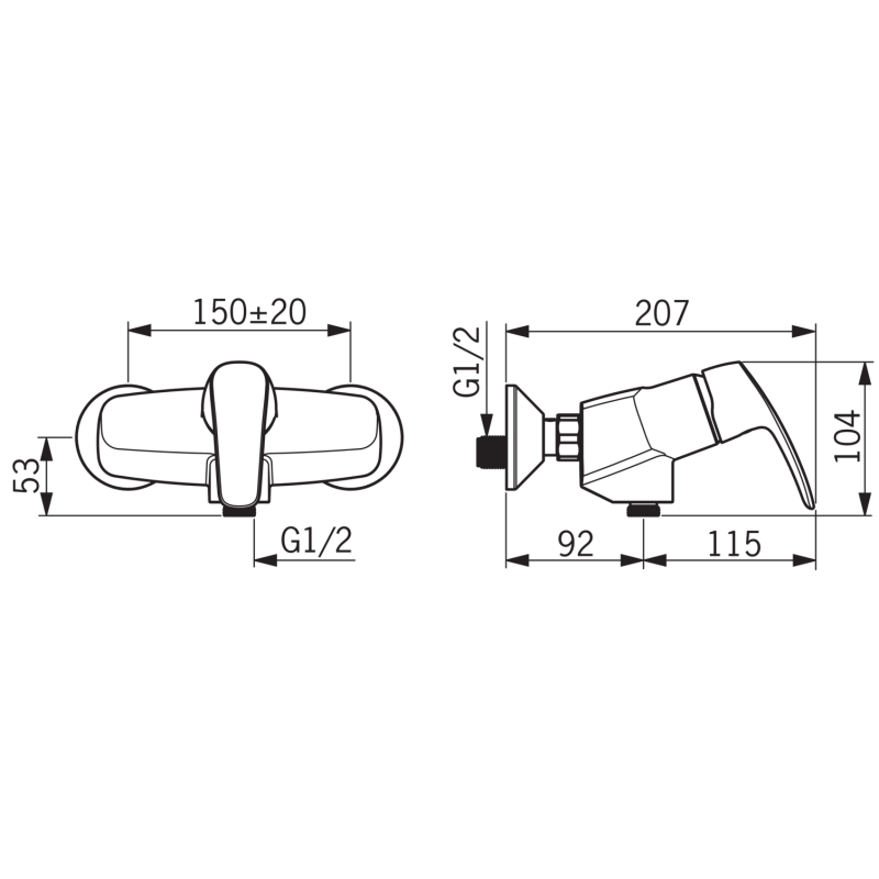 Dušo maišytuvas, Chromuotas, Maks. vandens srautas - 15.6l/min, Svirtelė skirta reguliuoti vandens temperatūrą ir srovės stiprumą, Integruotos vandens srauto ir temperatūros ribojimo galimybės, Dušo žarnos pajungimas iš apačios G1/2