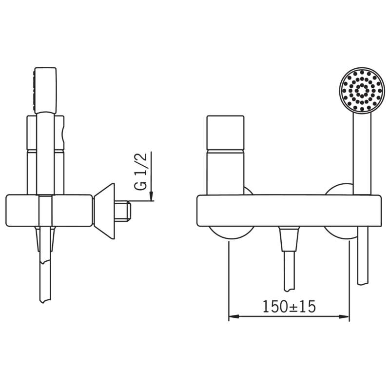 Dušo maišytuvas, Vienos svirties, Chromuotas, Su rankiniu dušu, Maks. vandens srautas - 14.4l/min, Maks. vandens temperatūra +80°C, Pajungimo dydis G1/2