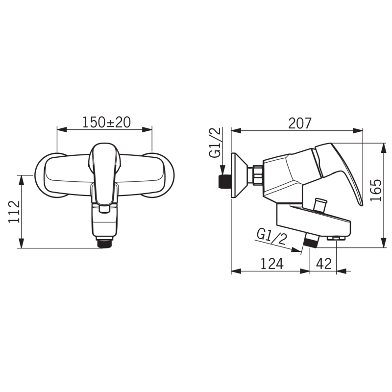 Dušo ir vonios maišytuvas, Chromuotas, Maks. vandens srautas - 19.8l/min, Svirtelė skirta reguliuoti vandens temperatūrą ir srovės stiprumą, Integruotos vandens srauto ir temperatūros ribojimo galimybės, Dušo žarnos pajungimas iš apačios G1/2