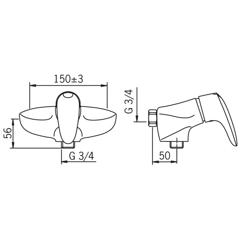 Dušo maišytuvas, Chromuotas, Maks. vandens srautas - 15.6l/min, Svirtelė skirta reguliuoti vandens temperatūrą ir srovės stiprumą, Integruotos vandens srauto ir temperatūros ribojimo galimybės, Dušo žarnos pajungimas iš apačios G3/4