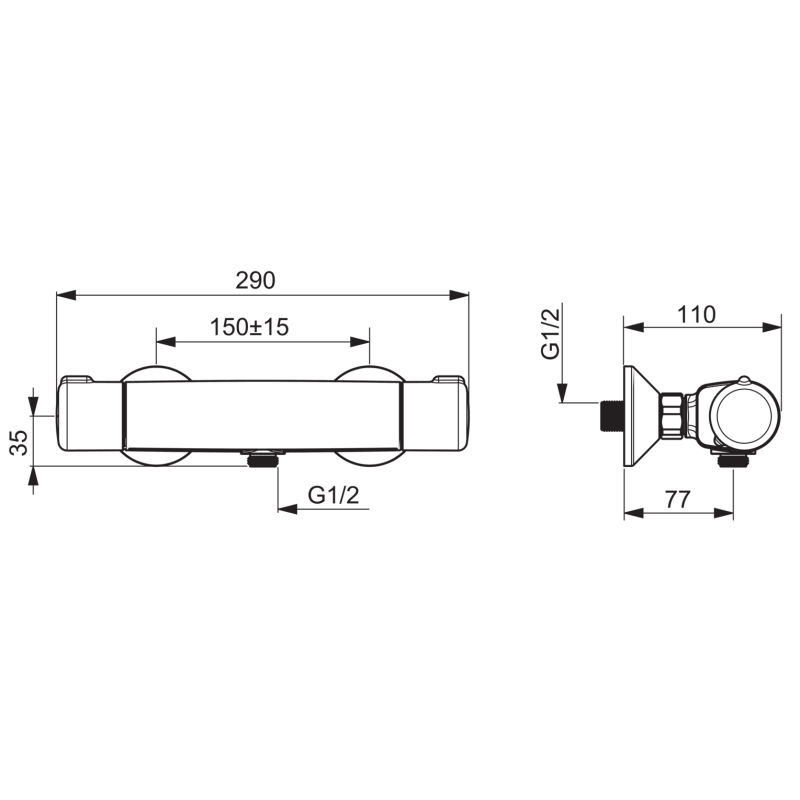 Dušo termostatinis maišytuvas, Chromuotas, Maks. vandens srautas - 16.2l/min, Temperatūros reguliavimo rankenėlėje integruotas temperatūros ribotuvas, Vandens taupymo funkcija Ecoflow, Tiksliai palaiko nustatytą vandens temperatūrą