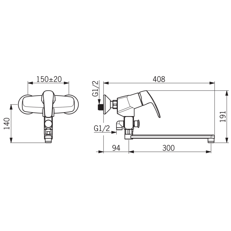 Dušo ir vonios maišytuvas, Chromuotas, Maks. vandens srautas - 15l/min, Svirtelė skirta reguliuoti vandens temperatūrą ir srovės stiprumą, Integruotos vandens srauto ir temperatūros ribojimo galimybės, Su sukiojamu 300mm snapu