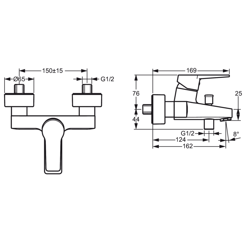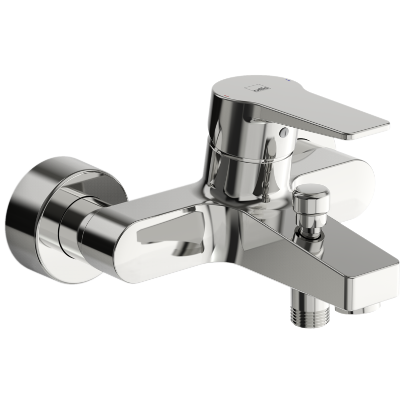 Vonios ir dušo maišytuvas, Chromuotas, Maks. vandens srautas - 19.8l/min, Vientisos formos svirtelė skirta reguliuoti temperatūrą ir srovės stiprumą, Integruotos vandens srauto ir temperatūros ribojimo galimybės, Dušo žarnos pajungimas iš apačios G1/2